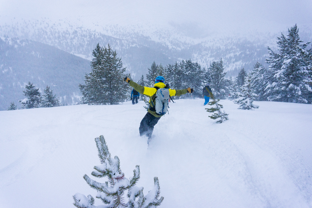 Everybody was stoked and ready to rip! Snow was falling all day long and avalanche conditions were on the rise. We made the decision to play it safe and kept things relatively low angle the entire day. The swallow tail board they call the “Japow” was a favorite for the conditions we had. Another board shape we really liked was the “Backwoods” which is more of a fish shape. Both board shapes we’re a blast to ride in the deep stuff!