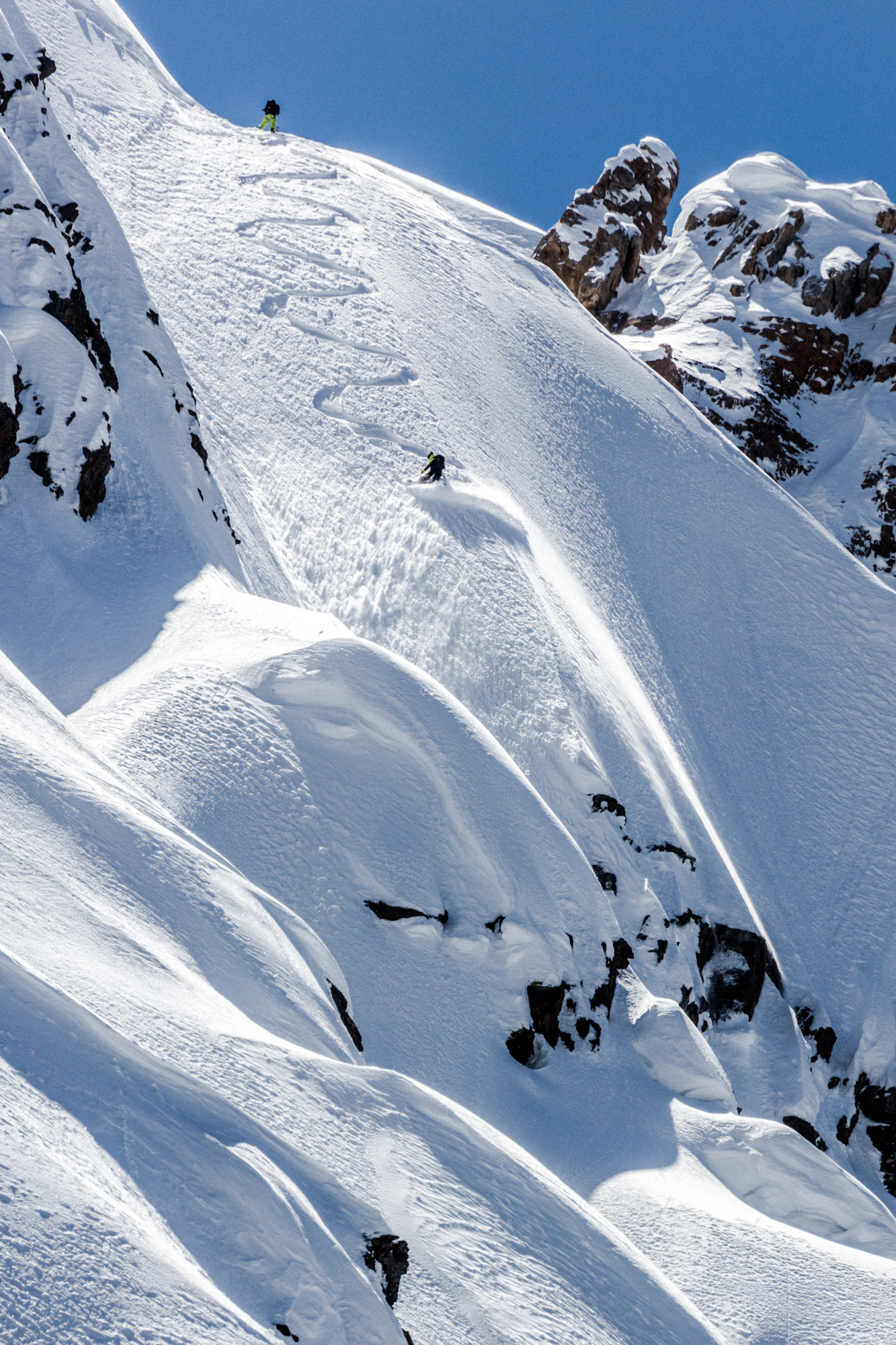 In our own experience climbing and riding large terrain, this concept of “clean lines” is one that continues to drive decision making. The theory is that if terrain is “clean”, you can potentially fall down a mountain and survive. What’s fascinating about Julien’s story here, is that although he came out with a serious spinal injury and many broken ribs, the fact remains that he did indeed survive. This truly is testament to the fact that he chose terrain that was relatively clean and free of terminal, large scale cliff bands.